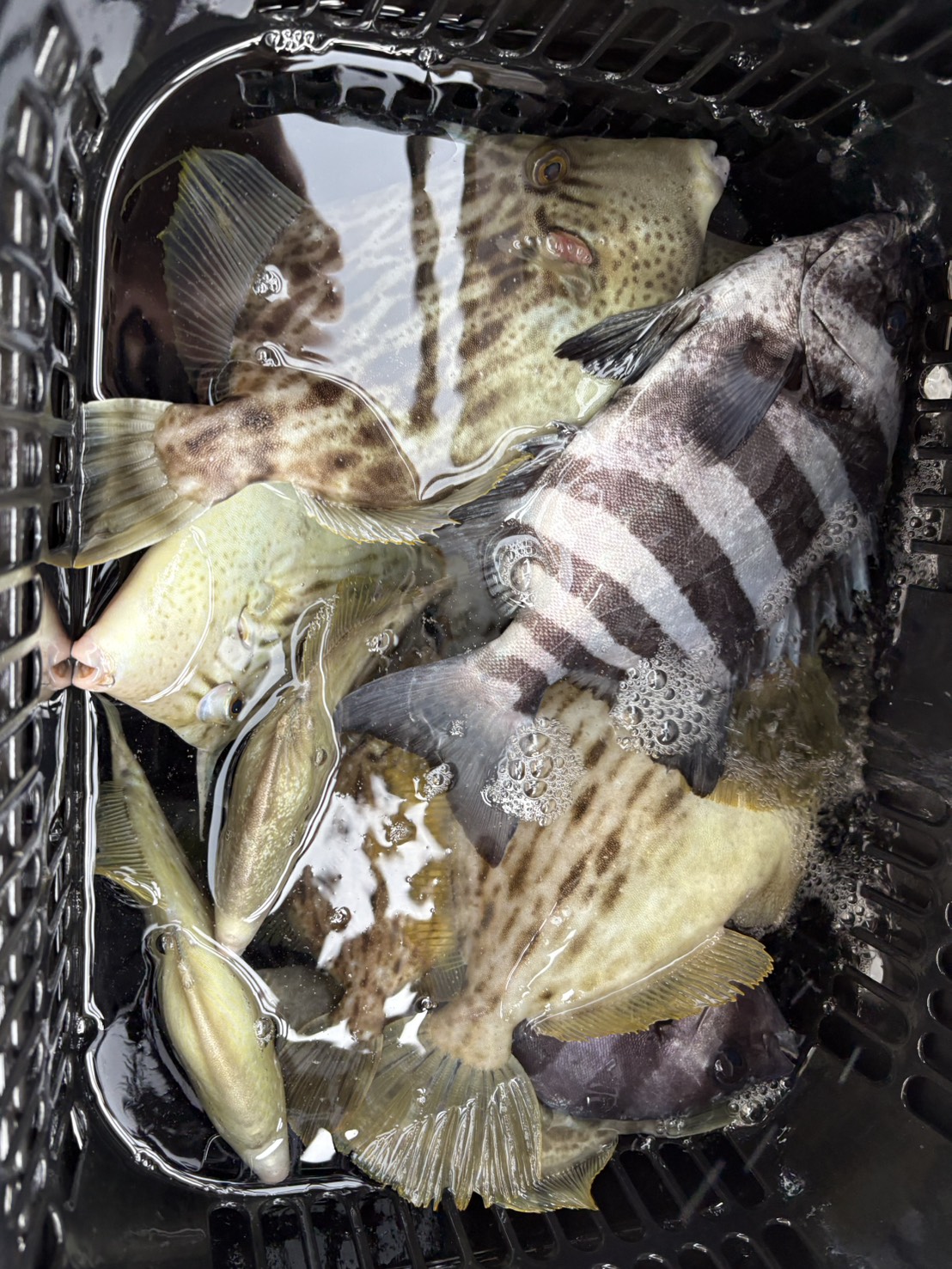 朝一は少し厳しめのスタートとなりましたが、ポイントを移動しながら拾い釣りで、裏本命のサンバソウや特大ウマズラも顔を見せてくれ、終わってみれば型の良いのもまじり形になりました。